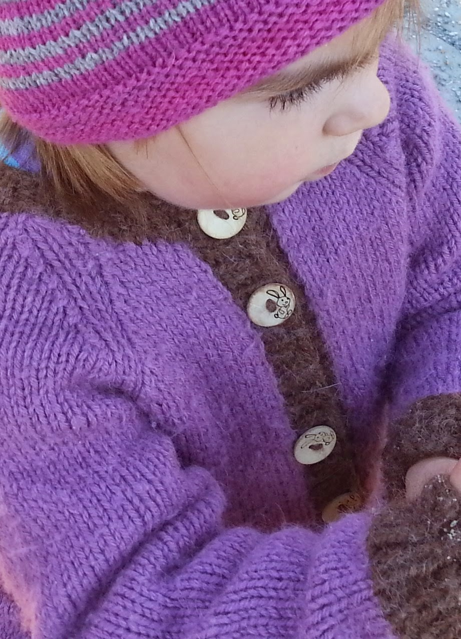 Knappene er søte harepuser, akkurat som yndlingsbamsen Trampe. De er kjøpt i en garnbutikk i Danmark i fjor, og jeg kan ikke forstå hvorfor jeg ikke kjøpte flere av de!